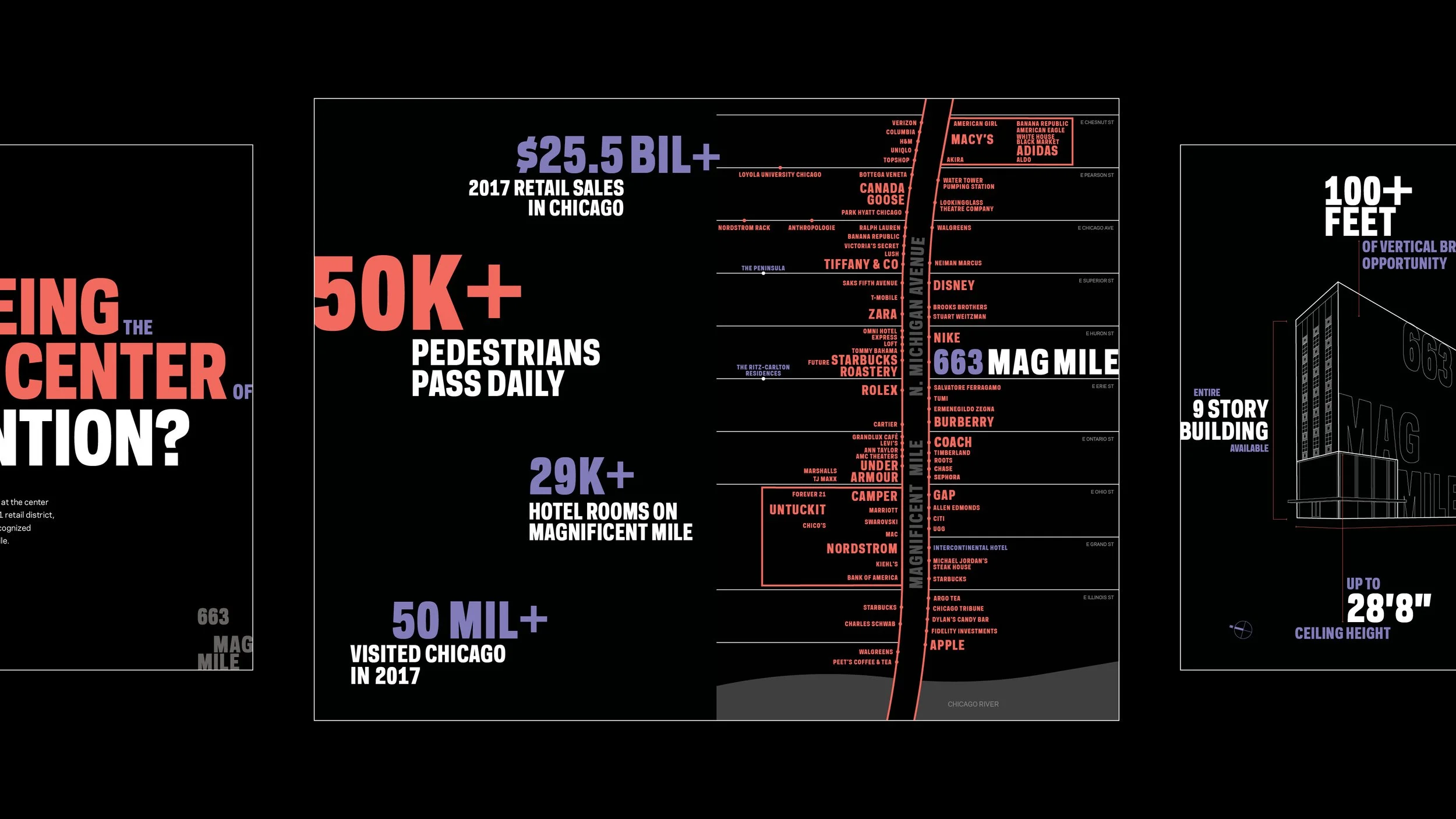 brief: Create a brand identity, a printed brochure, and a simple website for a retail building located at the center of Chicago’s #1 retail district, the globally recognized Magnificent Mile.