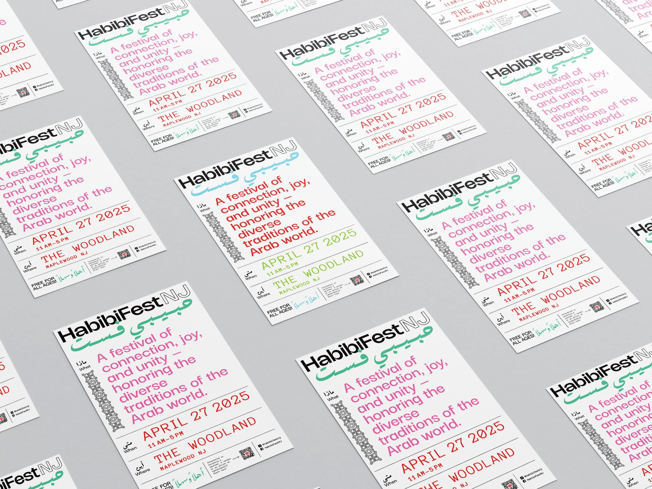 I’m working on a project that’s especially meaningful to me—HabibiFestNJ, an annual festival in Maplewood, NJ, celebrating Arab Heritage Month. I’ve been leading a rebrand, crafting a social campaign, and designing swag and collateral to bring the festival’s vibrant spirit to life. Here’s a peek at where things stand and some of the inspiration around it.